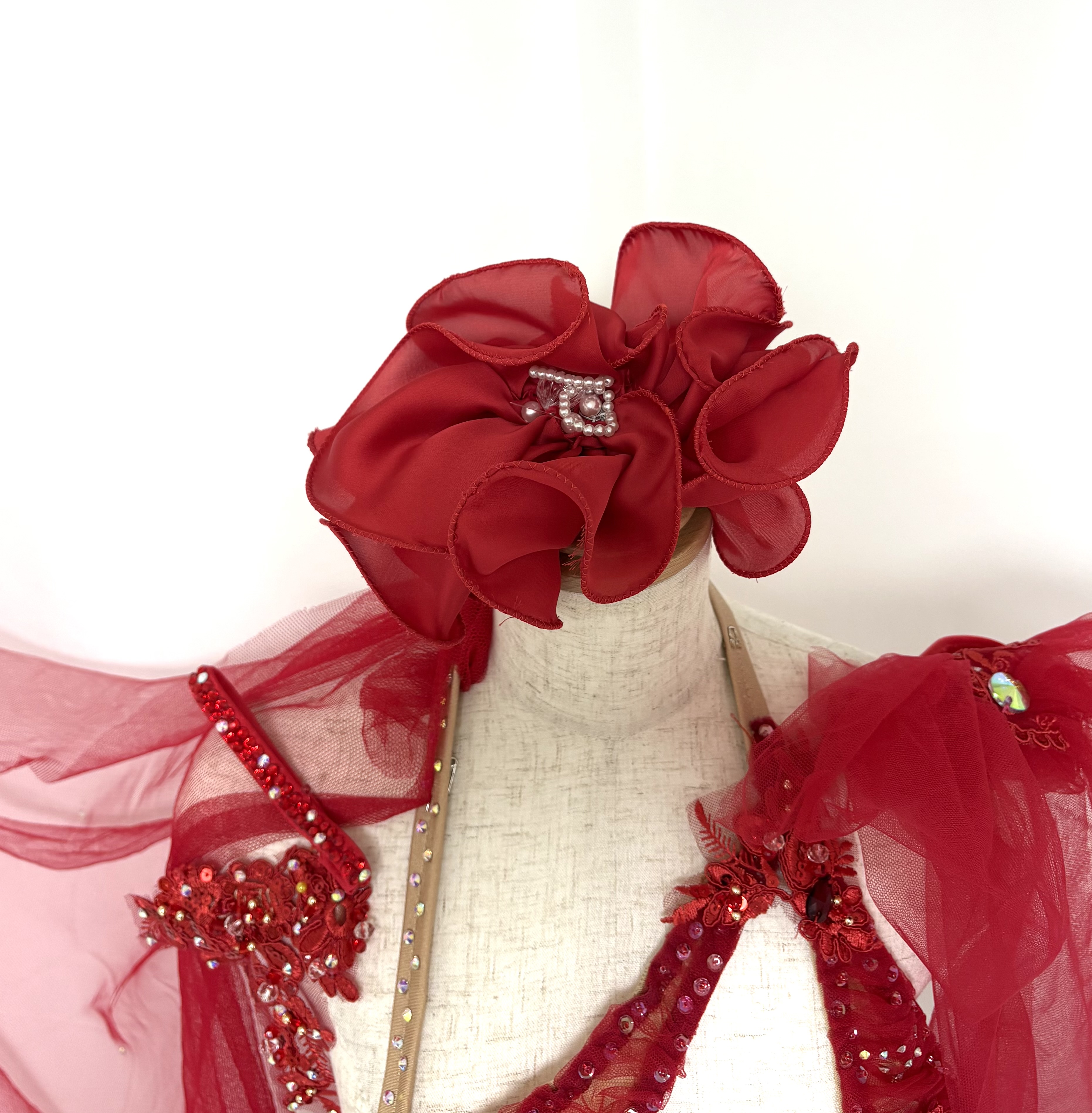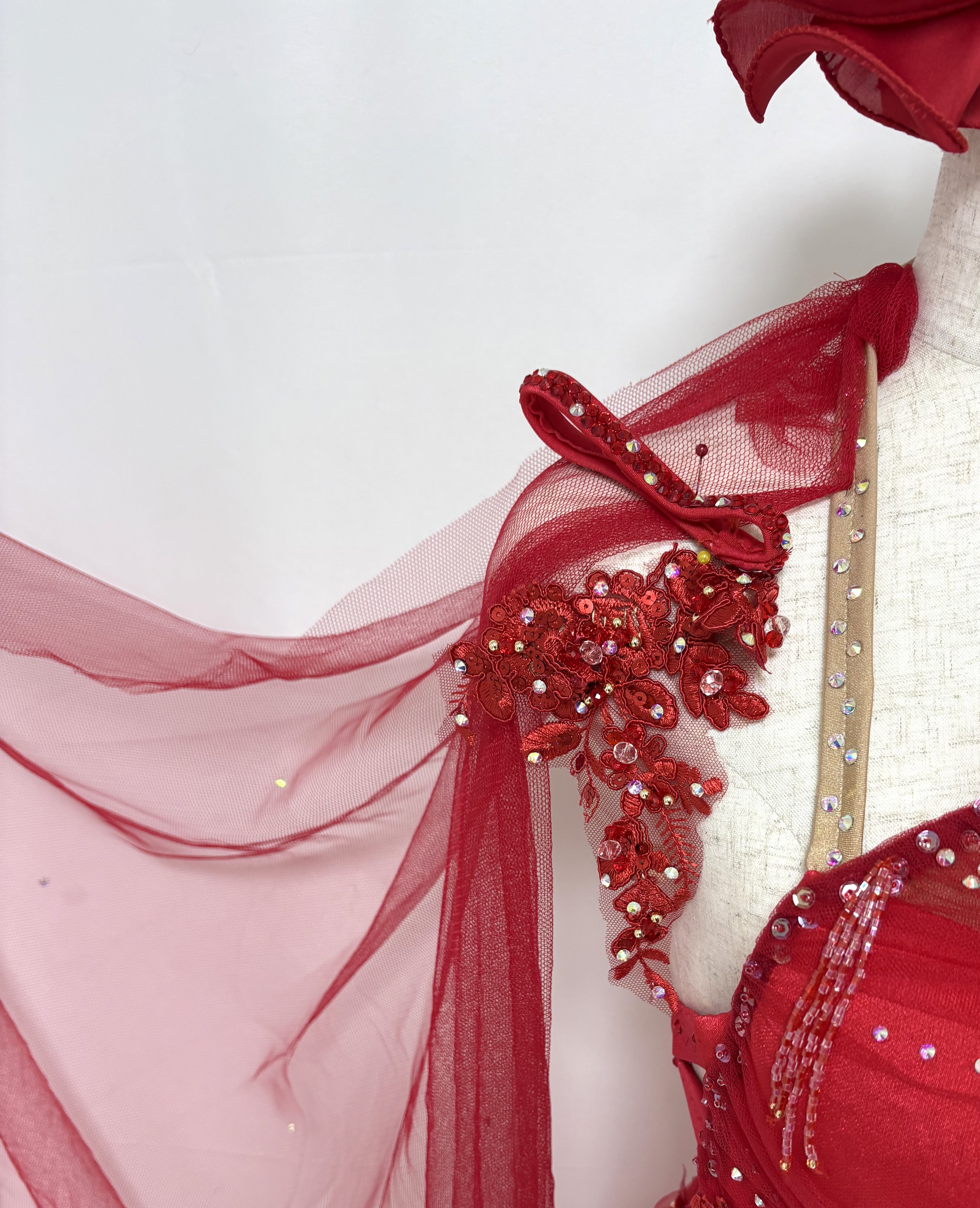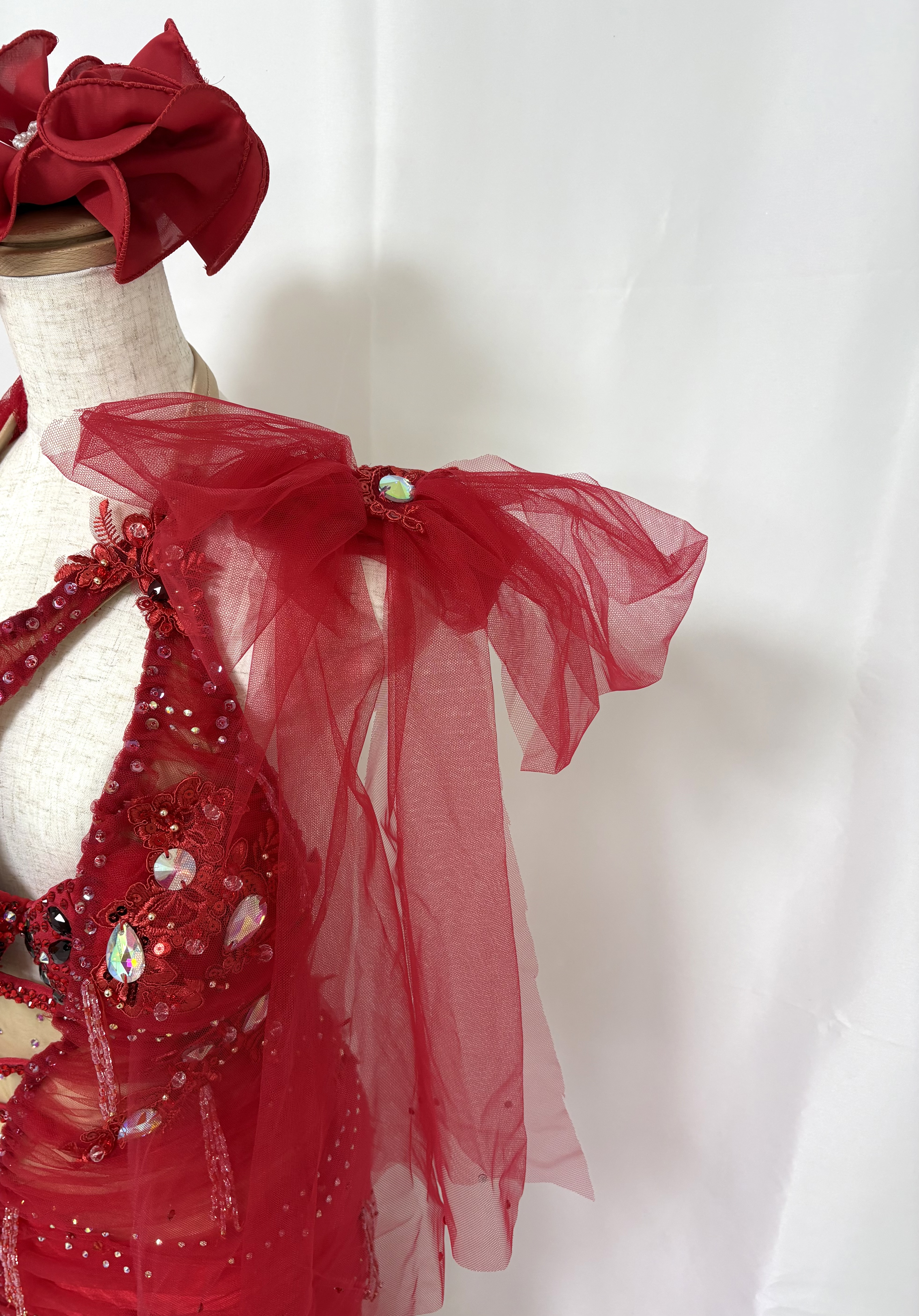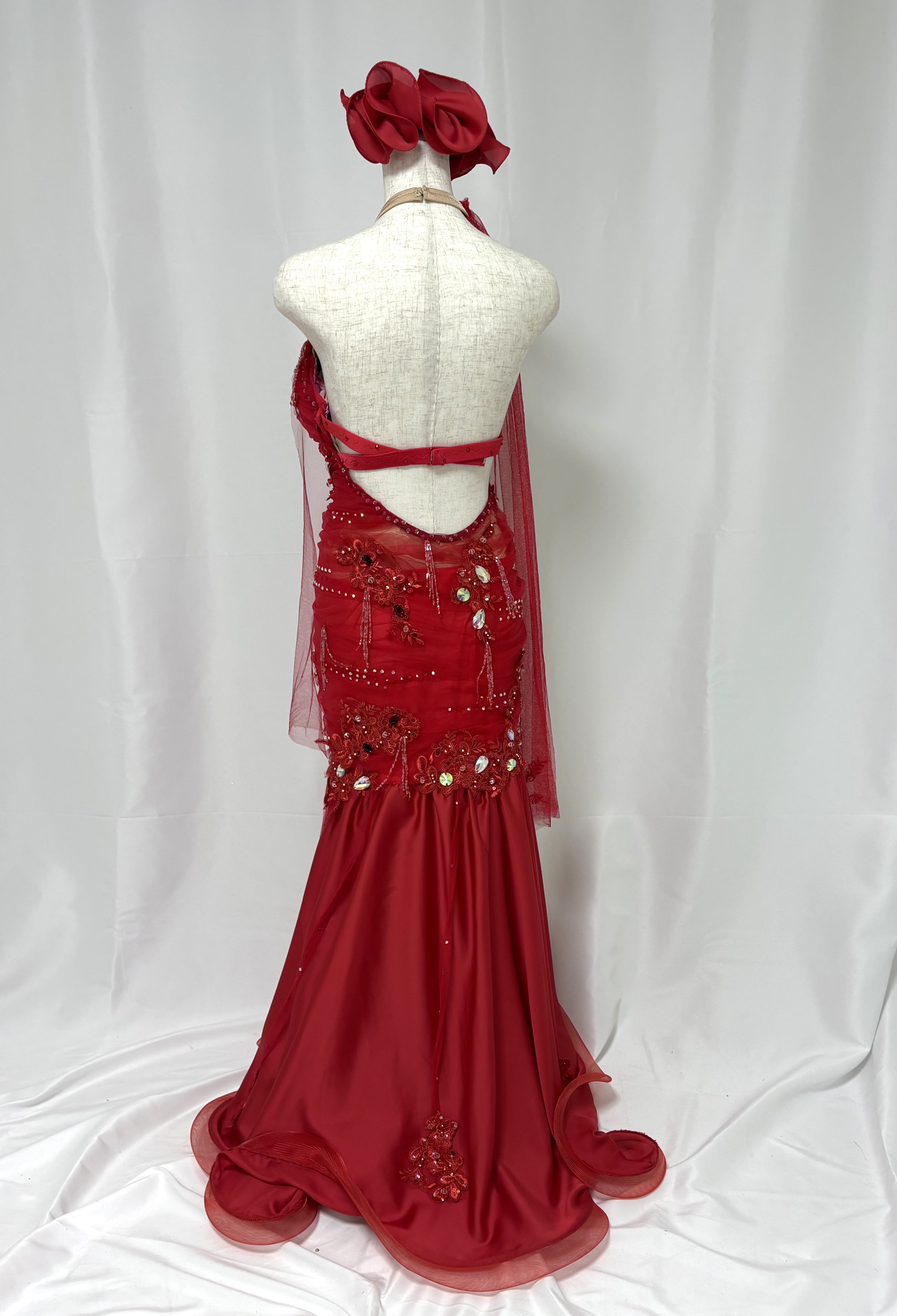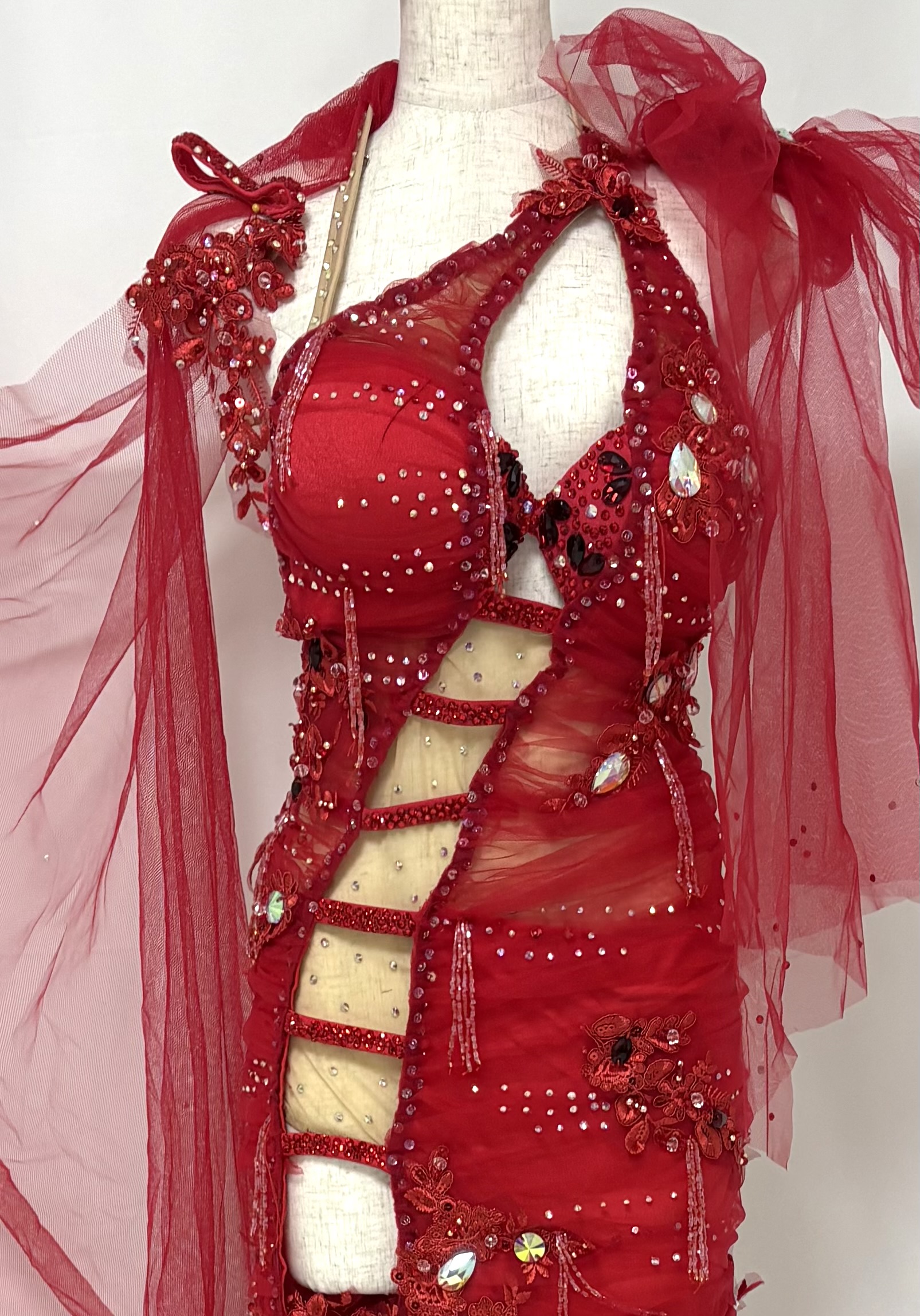 身体のラインに沿って流れるラインが特徴の真っ赤な衣装。